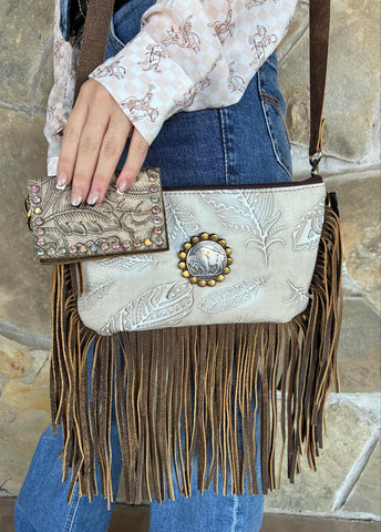 Feather Buffalo Coin Fringe Crossbody
