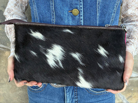 Elevate your accessory game with this captivating Pink Serape Cowhide Crossbody. Inspired by traditional saddle blanket patterns, this medium crossbody merges Southwestern flair with everyday practicality. The back showcases authentic cowhide variations that add texture and visual interest, while the genuine leather strap distributes weight comfortably across your body. Whether you're heading to the market or a night out, this versatile piece keeps your essentials within reach while making a bold style statement. Ideal for anyone drawn to rustic Western aesthetics and quality craftsmanship.