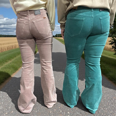 Step into effortless style with these stunning rose mauve corduroy flare pants. The high-rise waist flatters your silhouette while the soft corduroy fabric wraps you in all-day comfort. Perfect for creating vintage-inspired looks or modern casual outfits, these flares deliver that coveted retro vibe without sacrificing wearability. A wardrobe essential that feels as good as it looks.
